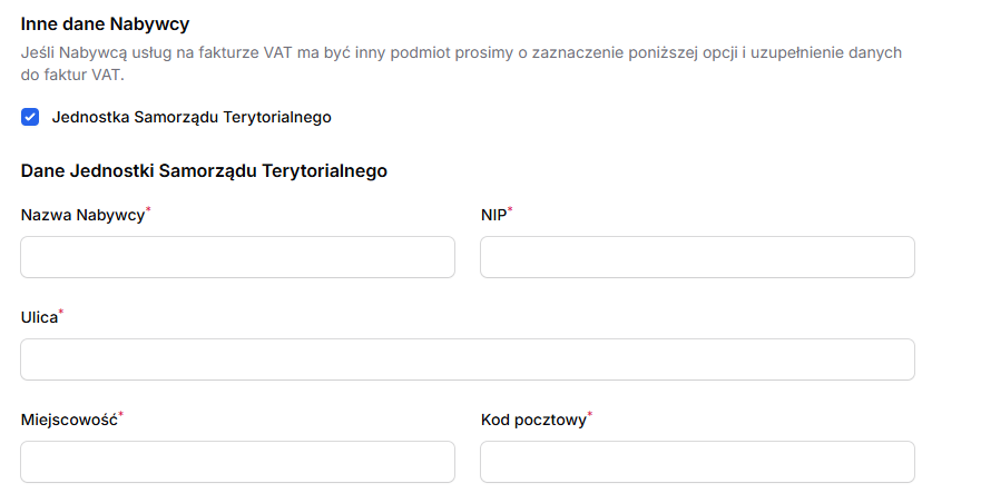 5. Uzupełnij dane do faktury VAT dla JST uzupełniając formularz