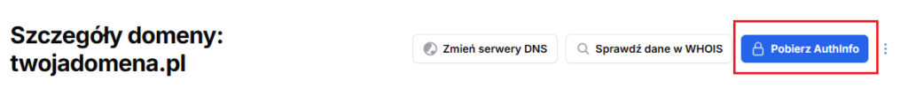 - Kliknij „Szczegóły” przy domenie, dla której chcesz uzyskać kod AuthInfo.