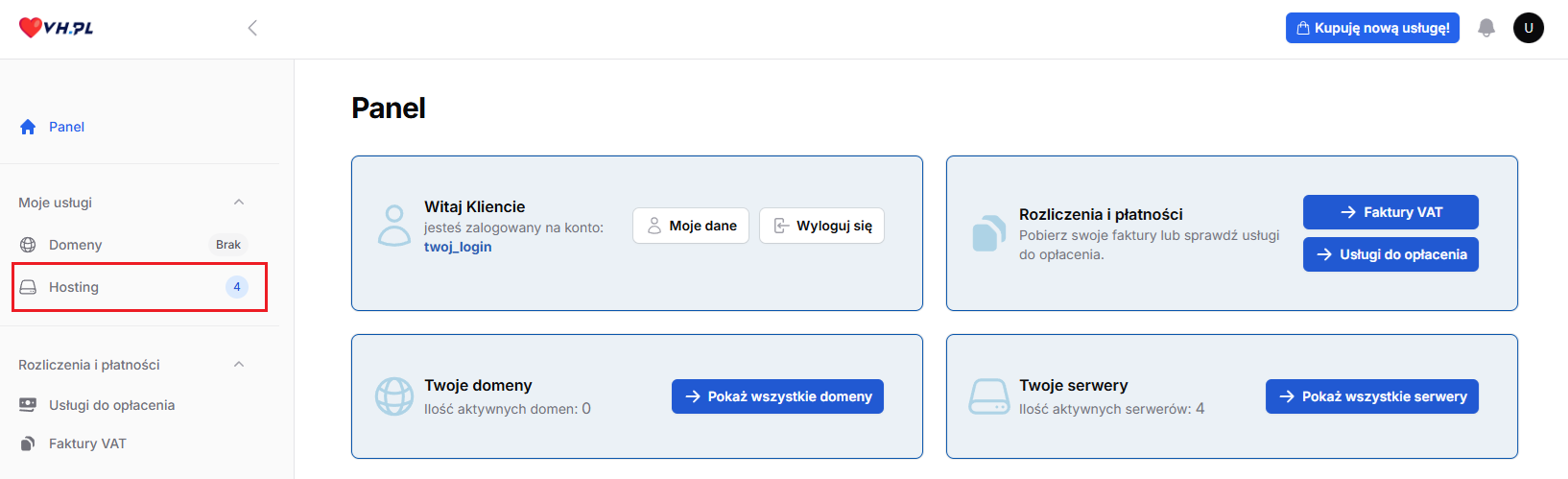 Korzystając z usług VH.pl masz możliwość automatycznego logowania do cPanel poprzez Panel klienta. Zobacz jak to wykonać: